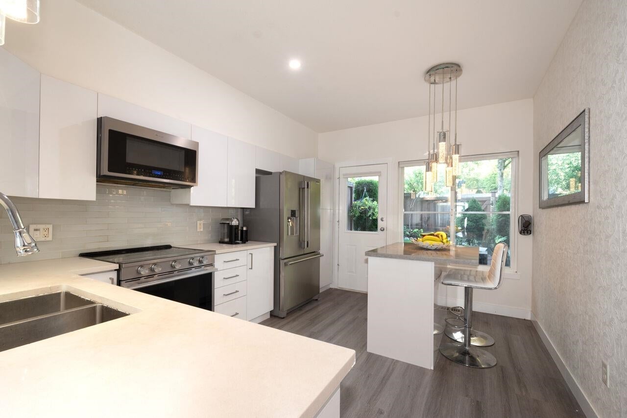 GORGEOUS, RENOVATED 3 BEDROOM TOWNHOME IN MOUNTAIN'S EDGE!! Located at the top of the complex so it's bright, offers sunset views and boasts a private, fenced patio/backyard with a gate to the street! Recently renovated throughout with quality grey laminate flooring, plus new paint, wallpaper and lighting. Great Room has a stone-decked gas fireplace and from here walk out to your front deck! Kitchen features a large entertaining island, quartz counters, white cabinetry, and newer Stainless Steel appliances. Walk out to a private backyard with artificial turf and a gate to the street. Up is a spacious Primary Bdrm with an elegant ensuite and the other 2 bedrooms are generous! Close to parks and trails! Walk to Aspenwood Elementary, Eagle Mtn Middle and Heritage Woods Secondary!