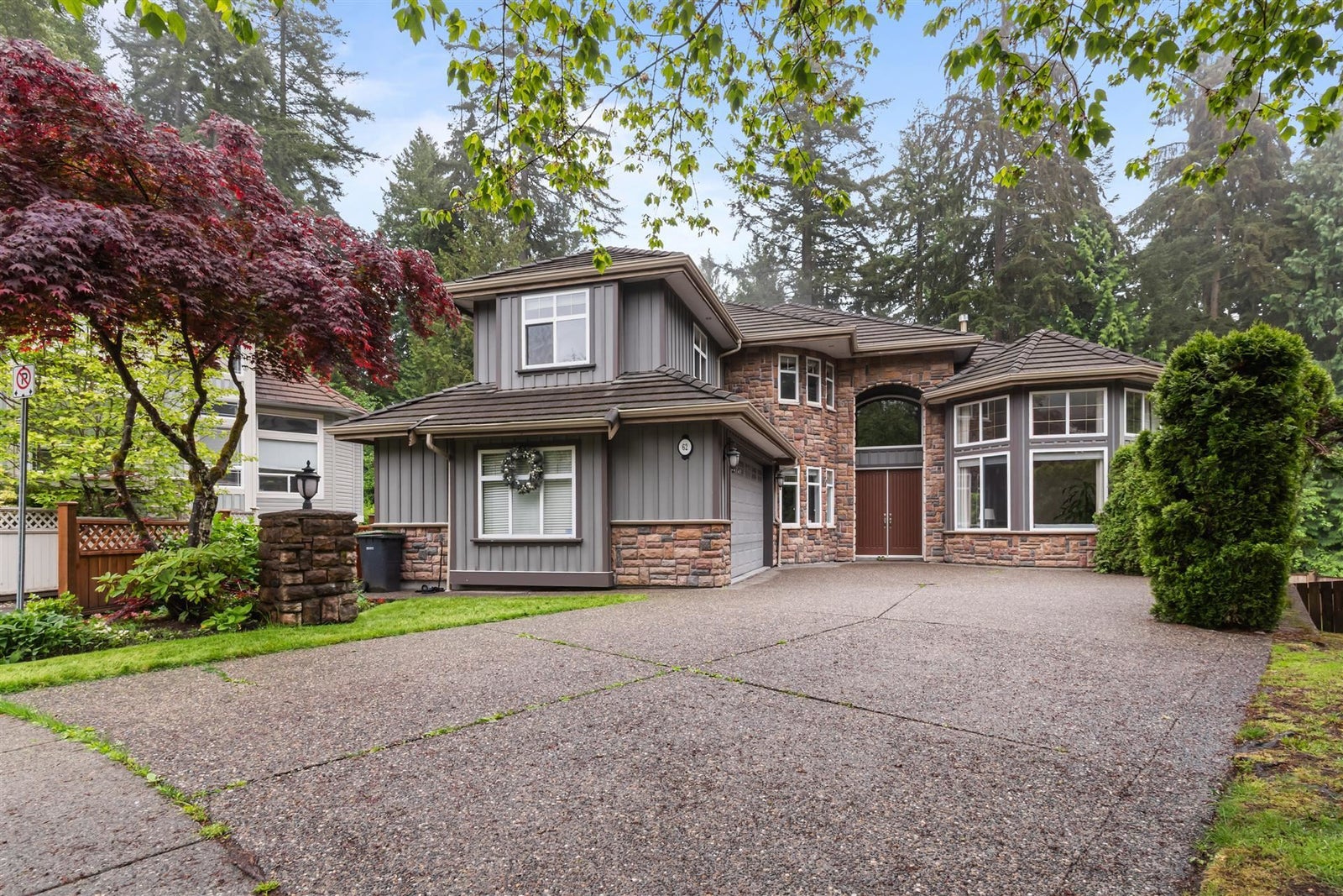 European castle style mansion with ULTIMATE PRIVACY nested in a quiet cul de sac location in Eagle View. HUGE - over 5300 sq ft features 8 bdrms, 5 baths, grand 2-storey foyer, walnut H/W floors, built-in surround sound speakers throughout. Superior craftsmanship. Gourmet kitchen boasts maple cabinets, granite counters, S/S appliances - overlooking private greenbelt - main floor laundry, walk out fully finished basement includes media room with 120 inch wall screen - Possible 2 bdrm suite (requires stove), R/I second laundry. Immerse in your own world in the private backyard for gardening & gatherings. This is one of the finest Heritage Mtn homes - Close to Evergreen Line, West Coast Express, Newport Village, Buntzen Lake & walking trails. OH: Sat (Sep 27) 2-4pm.