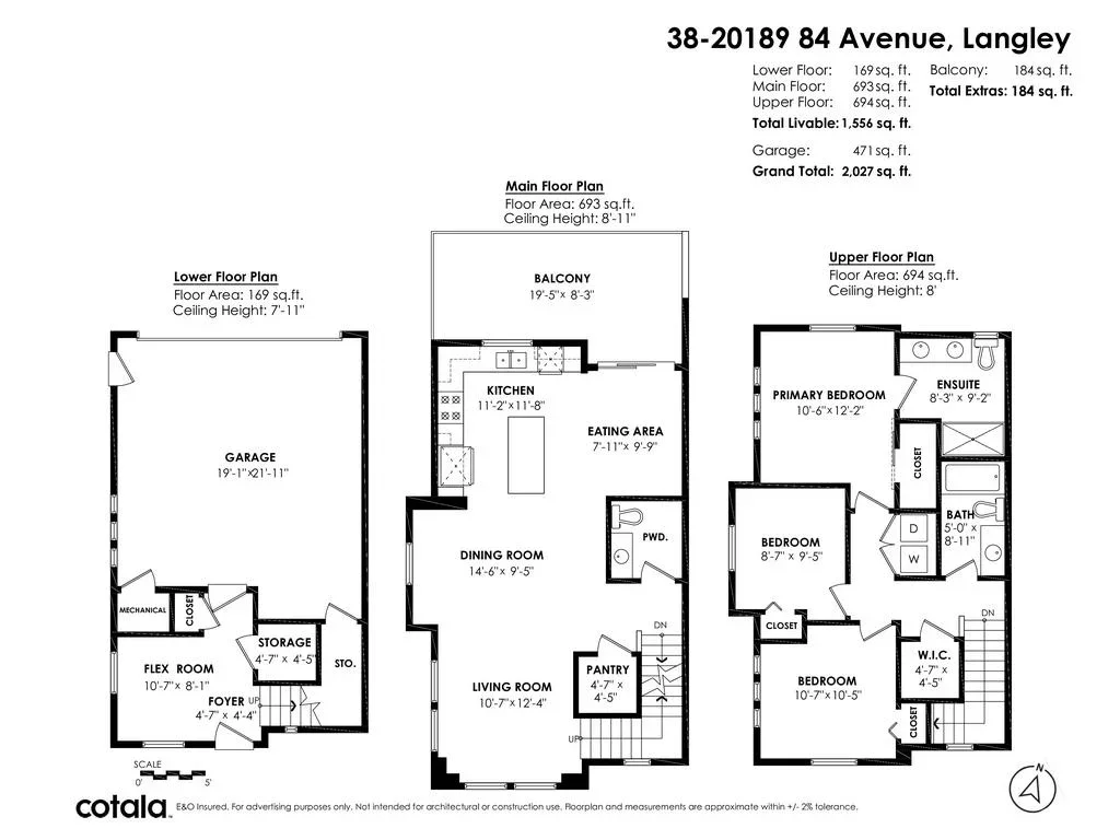 Madewell by Gatehouse ~ a boutique collection of 44 upscale homes w/ farmhouse inspired interiors.This END UNIT has mountain views, is full of natural light w/ tons of windows, & offers double side x side garage & room for TWO more vehicles on the driveway! With a wide open flr plan, this 2 storey w/ bsmt has 1556 sq ft, 3 bdrms, 3 spa like bathrms, flex space & is finished w/ attention to detail! Kitchen boasts S/S appliances including gas range, pot filler, panel front dishwasher & island w/seating for 3. Step out to the oversized deck, w/ gas hook up. Head down to the bonus flex space! Tankless HWT, & bonus A/C for the hot summer. This location is incredible with all amenities right outside your door and commuters will love the quick access to bridges, hwy 1 & Carvolth park & ride!